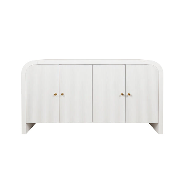 Bring luxury to your dining area with the Belmont Buffet. Featuring a highly durable white glossy lacquer finish and a unique waterfall edge, it'll effortlessly enhance any interior. Two adjustable interior shelves and one soft close drawer provide ample storage space. Upgrade your home with this elegant piece today.