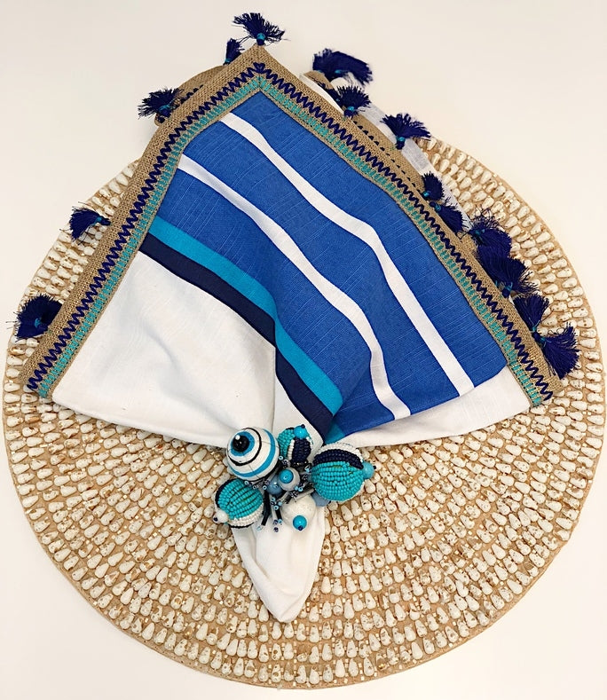 The Jackson placemats will add texture and layers to your casual table setting. They are beautifully beaded in two-tone color combinations with chic distressing effect much like found shells. Bring them to the beach on your next clambake outing