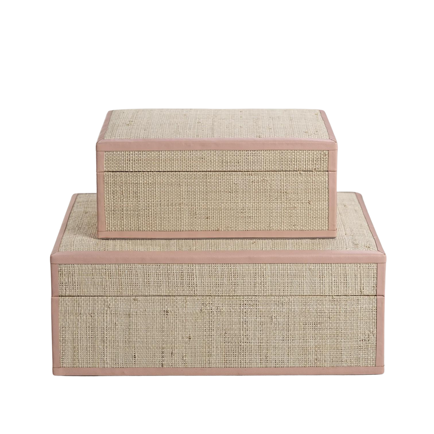 Lulu Natural Fiber Raffia Box with Pink Leather Trim
