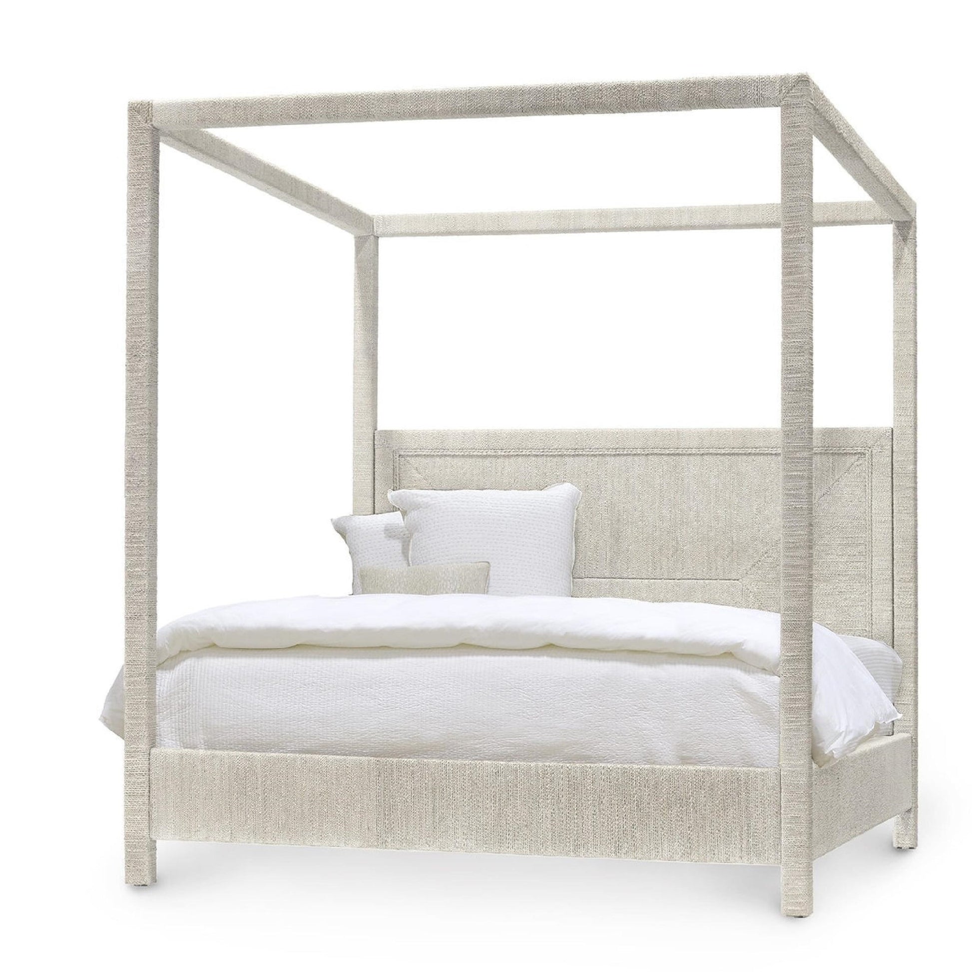 This gorgeous canopy queen bed is hand wrapped with warm brown rope round the bed's solid wood frame and posts, giving the piece an allover tactile look, perfect crisp pale linens and contemporary furnishings. A perfect addition to your modern coastal bedroom!