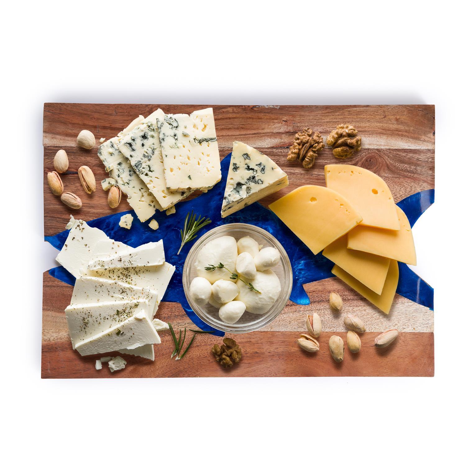 This beautiful cutting board is crafted from Acacia wood with a blue resin shark inlay design in the middle. Carved on the sides to complete the shark look makes this piece so unique. This board is perfect for serving charcuterie, cheese, breads and much more! May also be used as a decorative stage for things in your kitchen or home.