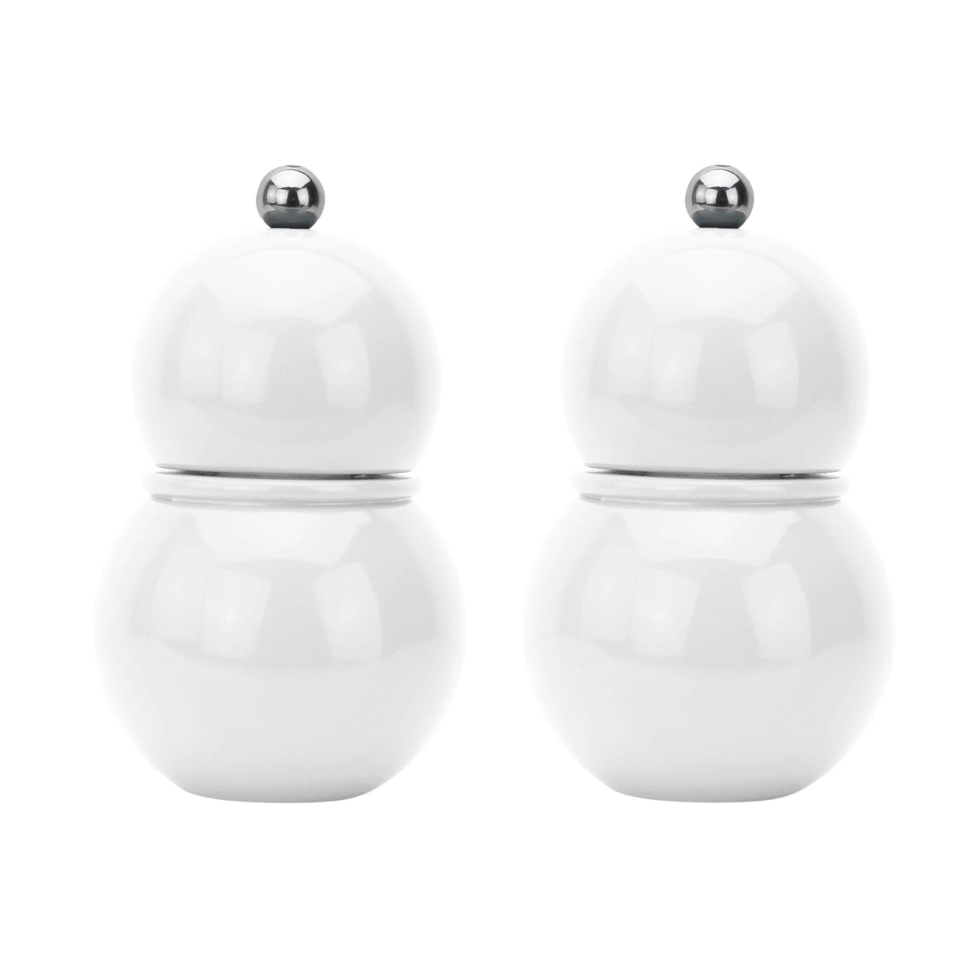 Featuring the iconic bobbin shape. The pepper and salt grinders are made from solid Rubber wood fully FSC certified, finished with 8 coats of high gloss lacquer hand polished between each coat. Using a ceramic mechanism, the mill requires a clockwise motion to activate. The mills can be used for grinding either Rock Salt (Dry Salt Crystals) or Black Peppercorns.